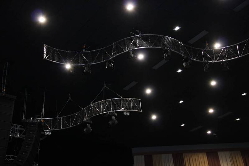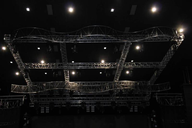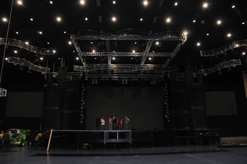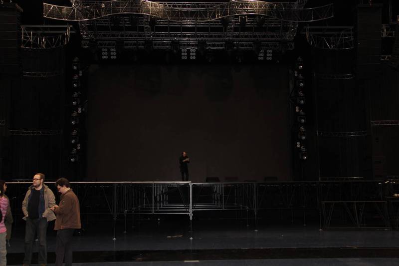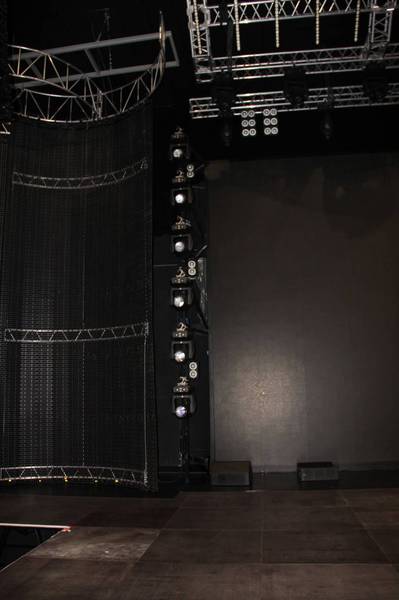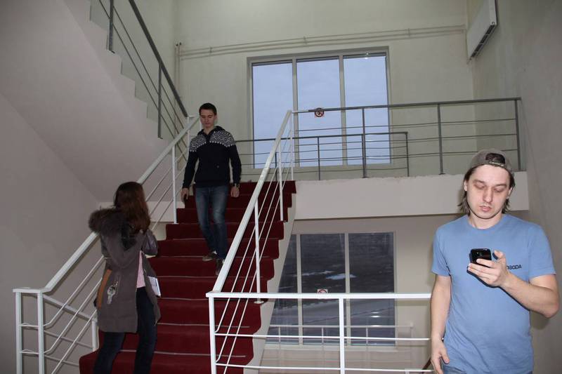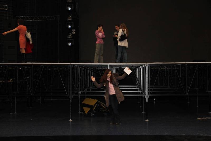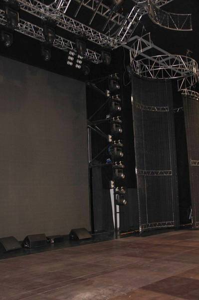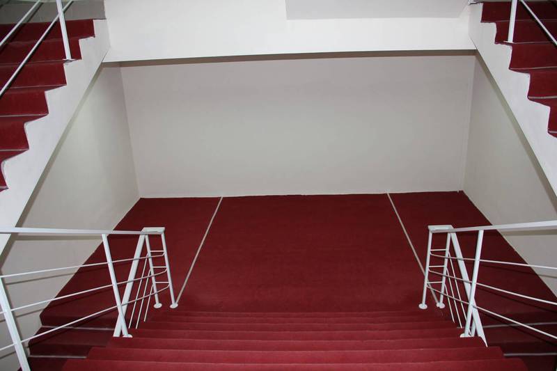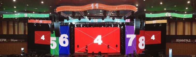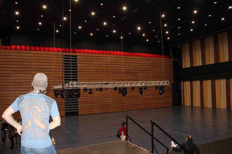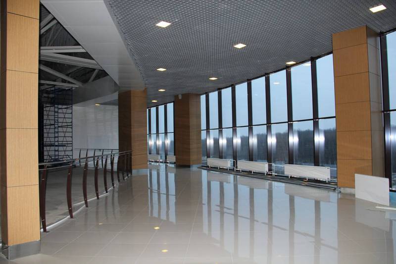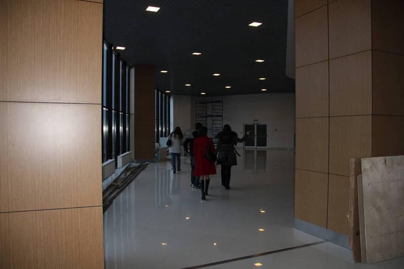 Во время нашего посещения зрительские трибуны были сложены. На фотографиях это выглядит как «деревянная стенка с горизонтальными полосами».
