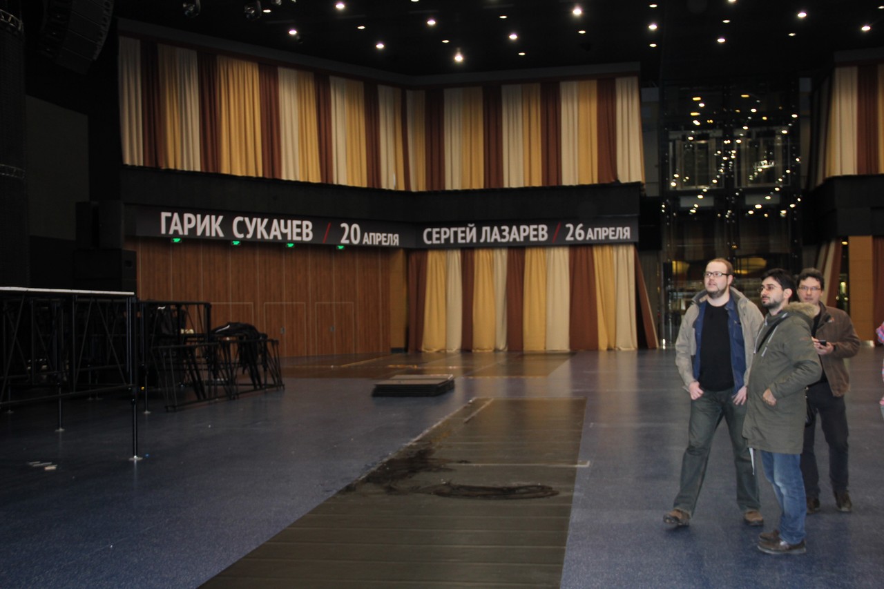 - Чёрные полосы на полу - это временно снятое покрытие сцены, танцевальный линолеум.